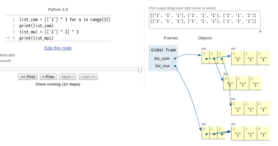 print('second', list_mul) # second [['1', '1', '1'], ['1', '1', '1'], ['1', '1', '1']]